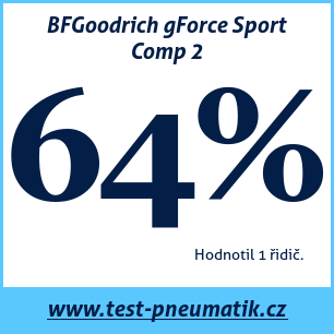 BFGoodrich gForce Sport Comp 2 BFGoodrichBFGoodrich gForce Sport Comp 2 – recenze letní pneumatiky BFGoodrich gForce Sport Comp 2, kterou hodnotilo 1 uživatelů a dali jí celkovou známku 83 %. Tato pneumatika je nejčastěji testována v rozměrech 225 45 R17.