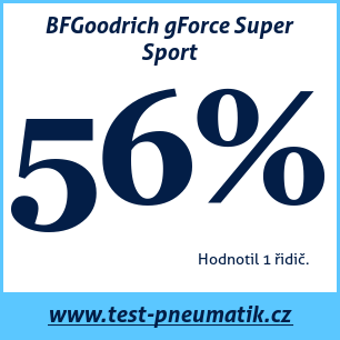 BFGoodrich gForce Super Sport BFGoodrichBFGoodrich gForce Super Sport – recenze letní pneumatiky BFGoodrich gForce Super Sport, kterou hodnotilo 1 uživatelů a dali jí celkovou známku 71 %. Tato pneumatika je nejčastěji testována v rozměrech 225 45 R17.