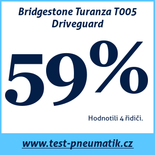 Bridgestone Turanza T005 Driveguard BridgestoneBridgestone Turanza T005 Driveguard – recenze letní pneumatiky Bridgestone Turanza T005 Driveguard, kterou hodnotilo 4 uživatelů a dali jí celkovou známku 76 %. Tato pneumatika je nejčastěji testována v rozměrech 205 60 R16, 225 45 R17, 185 65 R15.