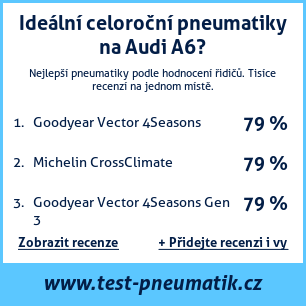 Pokud máte vlastní web s tématikou automobilů, nebo jste dodavatelem pneumatik, můžete na svůj web umístit naši plaketu s hodnocením pneumatik vhodných pro vůz Audi A6: Test pneumatik na Audi A6 [png] ![]()