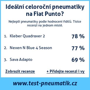 Pokud máte vlastní web s tématikou automobilů, nebo jste dodavatelem pneumatik, můžete na svůj web umístit naši plaketu s hodnocením pneumatik vhodných pro vůz Fiat Punto: Test pneumatik na Fiat Punto [png] ![]()