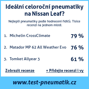 Pokud máte vlastní web s tématikou automobilů, nebo jste dodavatelem pneumatik, můžete na svůj web umístit naši plaketu s hodnocením pneumatik vhodných pro vůz Nissan Leaf: Test pneumatik na Nissan Leaf [png] ![]()
