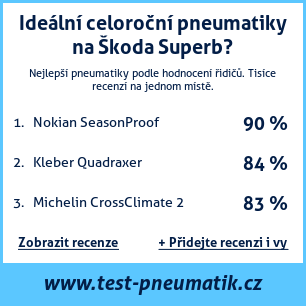 Pokud máte vlastní web s tématikou automobilů, nebo jste dodavatelem pneumatik, můžete na svůj web umístit naši plaketu s hodnocením pneumatik vhodných pro vůz Škoda Superb: Test pneumatik na Škoda Superb [png] ![]()