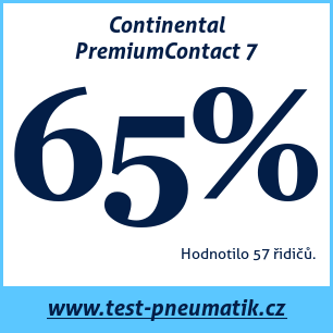 Continental PremiumContact 7 – recenze letní pneumatiky Continental PremiumContact 7, kterou hodnotilo 47 uživatelů a dali jí celkovou známku 84 %. Tato pneumatika je nejčastěji testována v rozměrech 225 45 R17, 205 55 R16, 225 40 R18.