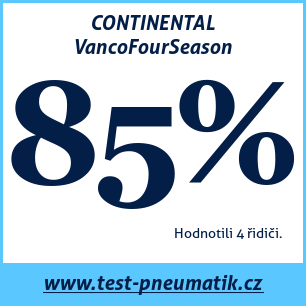 CONTINENTAL VancoFourSeason – recenze dodávkových pneumatik CONTINENTAL VancoFourSeason, kterou hodnotilo 4 uživatelů a dali jí celkovou známku 85 %. Tato pneumatika je nejčastěji testována v rozměrech 225 70 R15, 235 65 R16, 275 70 R15.