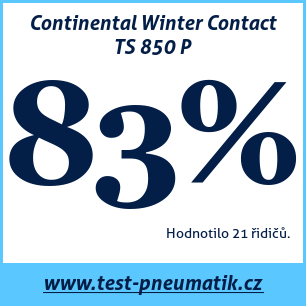 Continental Winter Contact TS 850 P – recenze zimní pneumatiky Continental Winter Contact TS 850 P, kterou hodnotilo 21 uživatelů a dali jí celkovou známku 83 %. Tato pneumatika je nejčastěji testována v rozměrech 225 45 R17, 205 55 R16, 225 40 R18.
