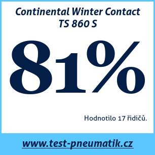 Continental Winter Contact TS 860 S – recenze zimní pneumatiky Continental Winter Contact TS 860 S, kterou hodnotilo 14 uživatelů a dali jí celkovou známku 80 %. Tato pneumatika je nejčastěji testována v rozměrech 225 40 R19, 205 55 R16, 275 35 R19.