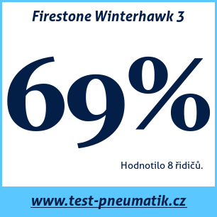 Firestone Winterhawk 3 – recenze zimní pneumatiky Firestone Winterhawk 3, kterou hodnotilo 8 uživatelů a dali jí celkovou známku 69 %. Tato pneumatika je nejčastěji testována v rozměrech 225 45 R17, 225 50 R17, 205 55 R16.