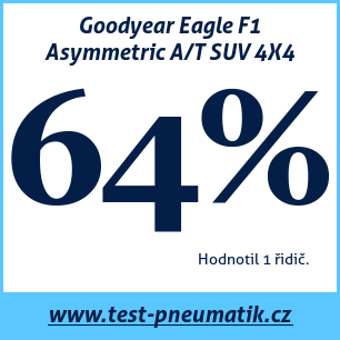 Ne, pneumatiky Goodyear Eagle F1 Asymmetric A/T SUV 4X4 zatím nebyly zařazeny do žádného z oficiálních testů. Nicméně na webu test-pneumatik.cz najdete tisíce uživatelských recenzí.