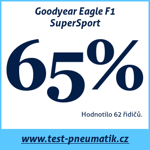 Goodyear Eagle F1 SuperSport – recenze letní pneumatiky Goodyear Eagle F1 SuperSport, kterou hodnotilo 51 uživatelů a dali jí celkovou známku 84 %. Tato pneumatika je nejčastěji testována v rozměrech 235 40 R18, 225 40 R18, 235 35 R19.