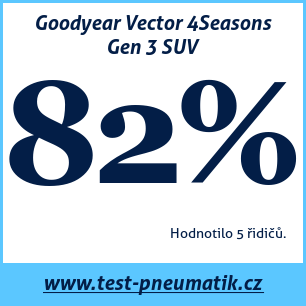 Goodyear Vector 4Seasons Gen 3 SUV – recenze pneumatik na vozidlo SUV, nebo 4x4 Goodyear Vector 4Seasons Gen 3 SUV, kterou hodnotilo 3 uživatelů a dali jí celkovou známku 75 %. Tato pneumatika je nejčastěji testována v rozměrech 215 60 R17, 265 60 R18.