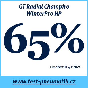 GT Radial Champiro WinterPro HP – recenze zimní pneumatiky GT Radial Champiro WinterPro HP, kterou hodnotilo 4 uživatelů a dali jí celkovou známku 84 %. Tato pneumatika je nejčastěji testována v rozměrech 225 40 R18, 235 45 R17, 245 45 R18.