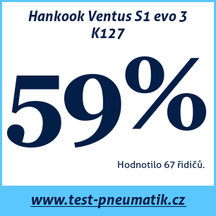 Hankook Ventus S1 evo 3 K127 – recenze letní pneumatiky Hankook Ventus S1 evo 3 K127, kterou hodnotilo 61 uživatelů a dali jí celkovou známku 77 %. Tato pneumatika je nejčastěji testována v rozměrech 225 45 R17, 225 40 R18, 235 35 R19.