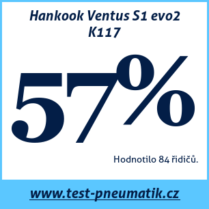 Hankook Ventus S1 evo2 K117 – recenze letní pneumatiky Hankook Ventus S1 evo2 K117, kterou hodnotilo 69 uživatelů a dali jí celkovou známku 74 %. Tato pneumatika je nejčastěji testována v rozměrech 225 45 R17, 225 40 R18, 255 35 R19.