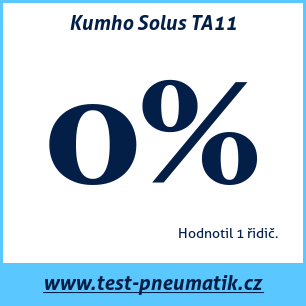 Ne, pneumatiky Kumho Solus TA11 zatím nebyly zařazeny do žádného z oficiálních testů. Nicméně na webu test-pneumatik.cz najdete tisíce uživatelských recenzí.