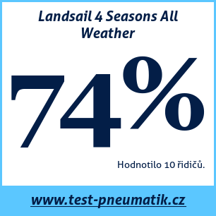 Landsail 4 Seasons All Weather LandsailLandsail 4 Seasons All Weather – recenze celoroční pneumatiky Landsail 4 Seasons All Weather, kterou hodnotilo 10 uživatelů a dali jí celkovou známku 74 %. Tato pneumatika je nejčastěji testována v rozměrech 205 55 R16, 225 45 R17, 225 40 R18.