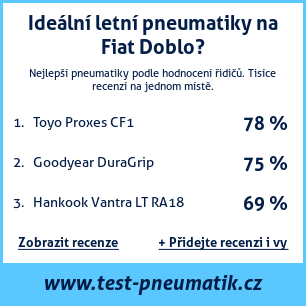Pokud máte vlastní web s tématikou automobilů, nebo jste dodavatelem pneumatik, můžete na svůj web umístit naši plaketu s hodnocením pneumatik vhodných pro vůz Fiat Doblo: Test pneumatik na Fiat Doblo [png] ![]()