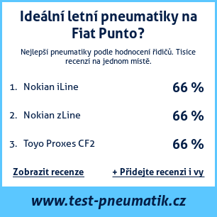 Pokud máte vlastní web s tématikou automobilů, nebo jste dodavatelem pneumatik, můžete na svůj web umístit naši plaketu s hodnocením pneumatik vhodných pro vůz Fiat Punto: Test pneumatik na Fiat Punto [png] ![]()
