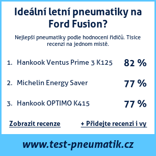 Pokud máte vlastní web s tématikou automobilů, nebo jste dodavatelem pneumatik, můžete na svůj web umístit naši plaketu s hodnocením pneumatik vhodných pro vůz Ford Fusion: Test pneumatik na Ford Fusion [png] ![]()