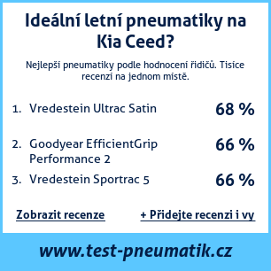 Pokud máte vlastní web s tématikou automobilů, nebo jste dodavatelem pneumatik, můžete na svůj web umístit naši plaketu s hodnocením pneumatik vhodných pro vůz Kia Ceed: Test pneumatik na Kia Ceed [png] ![]()