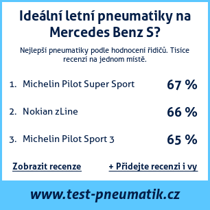 Pokud máte vlastní web s tématikou automobilů, nebo jste dodavatelem pneumatik, můžete na svůj web umístit naši plaketu s hodnocením pneumatik vhodných pro vůz Mercedes Benz S: Test pneumatik na Mercedes Benz S [png] ![]()
