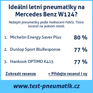 Pokud máte vlastní web s tématikou automobilů, nebo jste dodavatelem pneumatik, můžete na svůj web umístit naši plaketu s hodnocením pneumatik vhodných pro vůz Mercedes Benz W124: Test pneumatik na Mercedes Benz W124 [png] ![]()