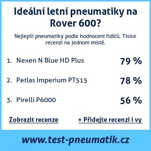 Pokud máte vlastní web s tématikou automobilů, nebo jste dodavatelem pneumatik, můžete na svůj web umístit naši plaketu s hodnocením pneumatik vhodných pro vůz Rover 600: Test pneumatik na Rover 600 [png] ![]()