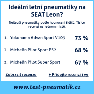 Pokud máte vlastní web s tématikou automobilů, nebo jste dodavatelem pneumatik, můžete na svůj web umístit naši plaketu s hodnocením pneumatik vhodných pro vůz SEAT Leon: Test pneumatik na SEAT Leon [png] ![]()