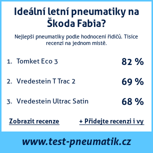 Pokud máte vlastní web s tématikou automobilů, nebo jste dodavatelem pneumatik, můžete na svůj web umístit naši plaketu s hodnocením pneumatik vhodných pro vůz Škoda Fabia: Test pneumatik na Škoda Fabia [png] ![]()