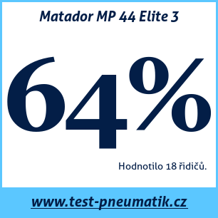 Matador MP 44 Elite 3 MatadorMatador MP 44 Elite 3 – recenze letní pneumatiky Matador MP 44 Elite 3, kterou hodnotilo 18 uživatelů a dali jí celkovou známku 83 %. Tato pneumatika je nejčastěji testována v rozměrech 205 55 R16, 205 50 R16, 225 45 R17.