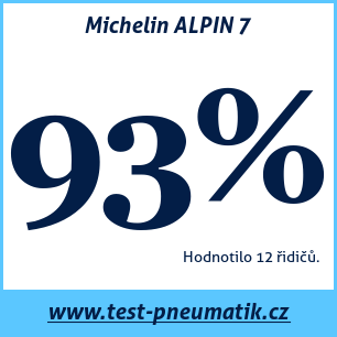 Michelin ALPIN 7 MichelinMichelin ALPIN 7 – recenze zimní pneumatiky Michelin ALPIN 7, kterou hodnotilo 12 uživatelů a dali jí celkovou známku 93 %. Tato pneumatika je nejčastěji testována v rozměrech 225 45 R17, 195 65 R15, 205 55 R16.
