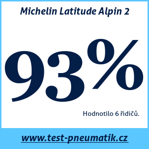 Michelin Latitude Alpin 2 – recenze pneumatik na vozidlo SUV, nebo 4x4 Michelin Latitude Alpin 2, kterou hodnotilo 6 uživatelů a dali jí celkovou známku 93 %. Tato pneumatika je nejčastěji testována v rozměrech 225 45 R17, 255 55 R19, 185 65 R15.