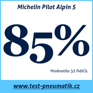 Michelin Pilot Alpin 5 – recenze zimní pneumatiky Michelin Pilot Alpin 5, kterou hodnotilo 26 uživatelů a dali jí celkovou známku 84 %. Tato pneumatika je nejčastěji testována v rozměrech 225 40 R18, 235 45 R18, 225 45 R17.