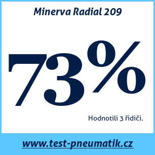 Minerva Radial 209 – recenze letní pneumatiky Minerva Radial 209, kterou hodnotilo 2 uživatelů a dali jí celkovou známku 93 %. Tato pneumatika je nejčastěji testována v rozměrech 195 65 R15.