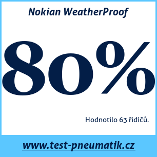 Nokian WeatherProof – recenze celoroční pneumatiky Nokian WeatherProof, kterou hodnotilo 59 uživatelů a dali jí celkovou známku 81 %. Tato pneumatika je nejčastěji testována v rozměrech 205 55 R16, 195 65 R15, 225 45 R17.