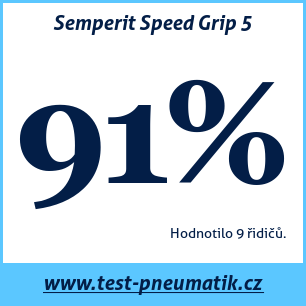 Semperit Speed Grip 5 – recenze zimní pneumatiky Semperit Speed Grip 5, kterou hodnotilo 7 uživatelů a dali jí celkovou známku 90 %. Tato pneumatika je nejčastěji testována v rozměrech 225 45 R17, 205 60 R16, 185 65 R15.