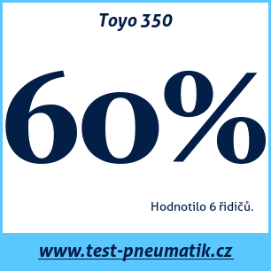 Pneumatiku Toyo 350 hodnotilo ve všech uváděných hlediscích celkem 6 uživatelů, zatím nikdo nevyplnil textovou recenzi.