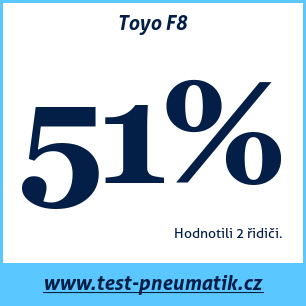 Ne, pneumatiky Toyo F8 zatím nebyly zařazeny do žádného z oficiálních testů. Nicméně na webu test-pneumatik.cz najdete tisíce uživatelských recenzí.