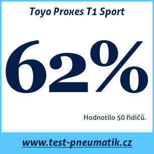 Toyo Proxes T1 Sport – recenze letní pneumatiky Toyo Proxes T1 Sport, kterou hodnotilo 48 uživatelů a dali jí celkovou známku 80 %. Tato pneumatika je nejčastěji testována v rozměrech 225 45 R17, 215 45 R17, 225 40 R18.