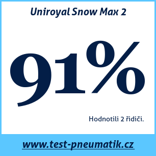 Uniroyal Snow Max 2 – recenze dodávkových pneumatik Uniroyal Snow Max 2, kterou hodnotilo 2 uživatelů a dali jí celkovou známku 91 %. Tato pneumatika je nejčastěji testována v rozměrech 215 65 R16, 185 80 R14.