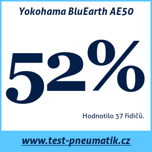 Yokohama BluEarth AE50 – recenze letní pneumatiky Yokohama BluEarth AE50, kterou hodnotilo 32 uživatelů a dali jí celkovou známku 65 %. Tato pneumatika je nejčastěji testována v rozměrech 225 45 R17, 195 65 R15, 225 40 R18.