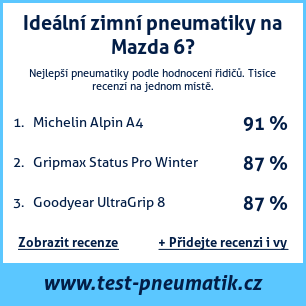 Pokud máte vlastní web s tématikou automobilů, nebo jste dodavatelem pneumatik, můžete na svůj web umístit naši plaketu s hodnocením pneumatik vhodných pro vůz Mazda 6: Test pneumatik na Mazda 6 [png] ![]()
